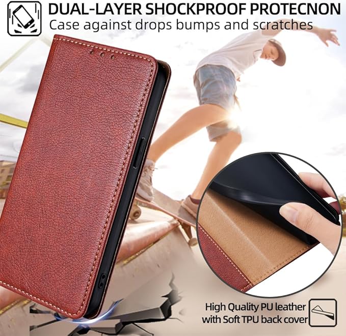 高品質なTPUとPUを利用することで良い手触りと耐衝撃性を実現 ●外部は上質なPU革素材を採用、傷や汚れが目立ちにくく長く使え、放熱性にも優れています。●本体を固定するカバーはTPU素材のソフトケースなので脱着が簡単。ポリカーボネートの固い素材ではないので、脱着時に本体を傷つける心配がなく、落下時にカバーが破損することも無いので安心してご利用いただけます。●レザーのカバーはTPUケースよりも少し大きめに設計されており、どのような落下でも、衝撃が直接スマートフォンに伝わらないので安心です。