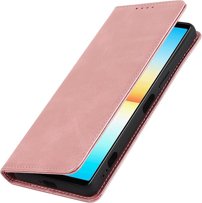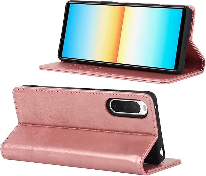 Xperia 5 V ケース 手帳型 Sony エクスペリア5v SO-53D SOG12 財布型 カバー カードポケット付き SUGOIDAN 携帯ケース カード レザー スタンド機能 ストラップホール付き マグネット内蔵 耐衝撃 全面保護(ピンク)