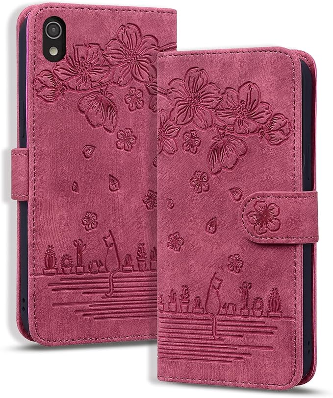 AQUOS sense SH-01K ケース 手帳型 SHV40 ケース AQUOS sense Lite SH-M05 ケース 手帳型 Aquos SH-01K スマホケース Android One S3 ケース 衝撃保護 プレミアムPUレザー 持ち運びに便利なリストストラップ スマホケース 財布型 桜柄マグネットバックル カード収納袋 角度調整可能なスタンド[レッド]
