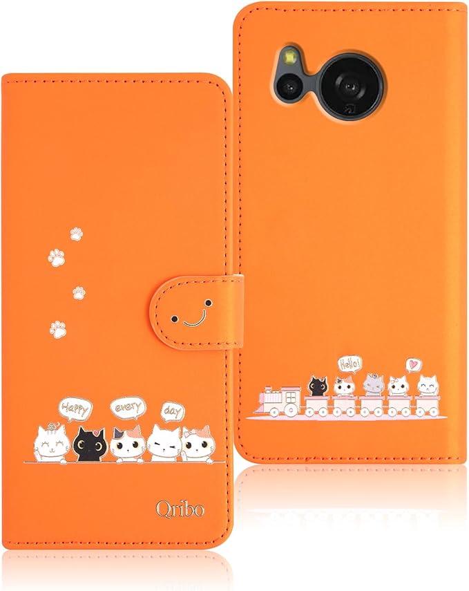 Qribo Aquos sense8 ケース 手帳型 アクオス sense8 カバー SH-54D ケース SHG11 ケース シンプルなのに可愛いデザイン エンボス加工猫柄 うれしい気持ち 6.1インチ対応 シャープ sense8 手帳型ケース アクオスセンス8 ケース スマホケース Aquos SHG11 ケース 薄型 防水 の耐久性 滑り防止 美しい 贈り物 友達 - オレンジ