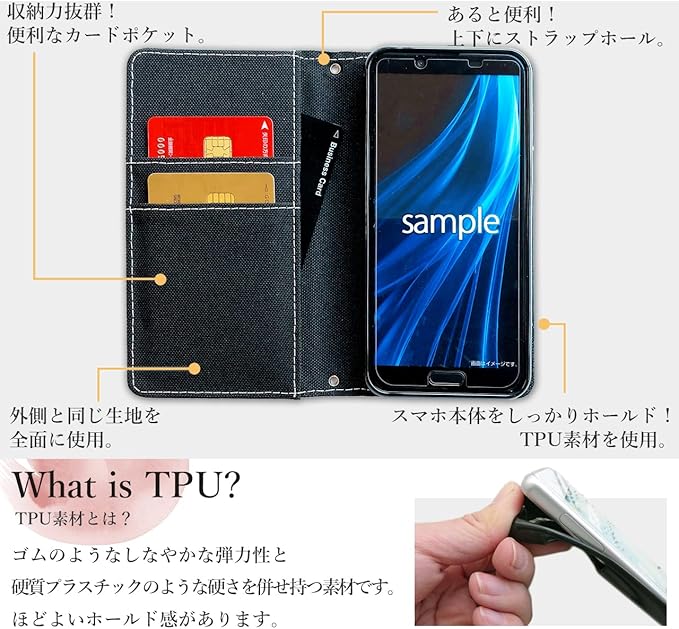 カードポケット収納、動画視聴に便利なスタンド機能付き