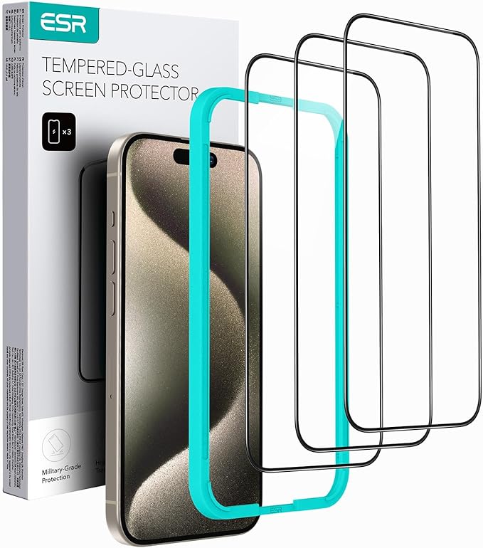 ESR いphone15pro フィルム スクリーン保護フィルム3枚 強化ガラスフィルム iphone 15 pro ガラスフィルム 簡単取り付けツール付き iphone15pro 硬度9H 軍事規格の飛散防止力 HD 耐傷性 アイフォン15 プロ対応(6.1インチ)