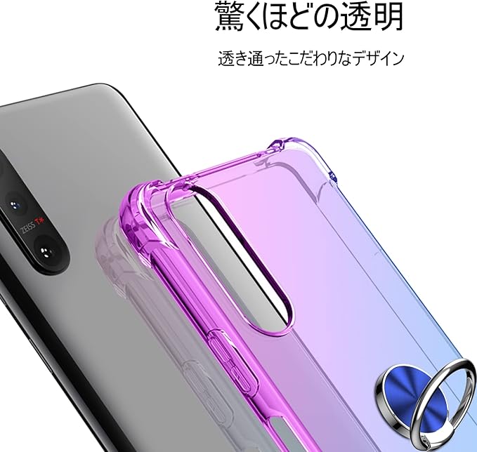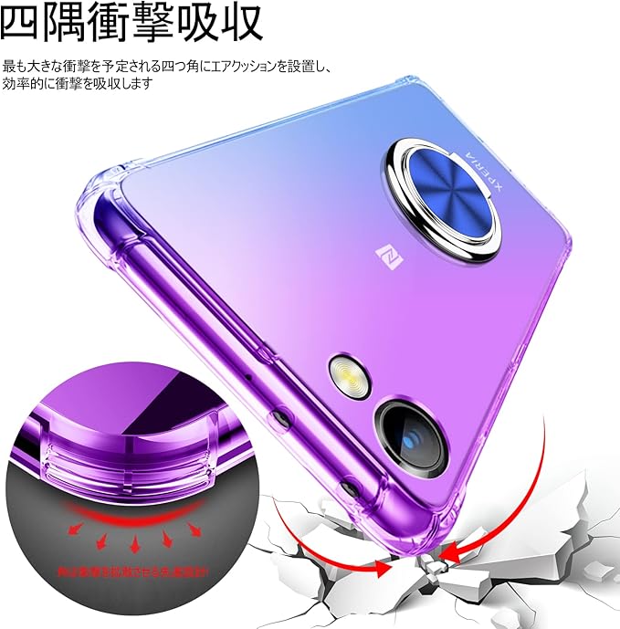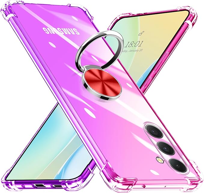 Galaxy A54 5G 用ケース リング付き 透明 耐衝撃 TPU クリア SC-53D au SCG21 ケース 車載ホルダー対応 全面保護 ギャラクシー a54 5g 用カバー レンズ保護 軽量 薄型 衝撃防止 カーマウントホルダー 黄変防止 スクラッチ防止 擦り傷防止 保護カバー ピンク/パープル KC64-133