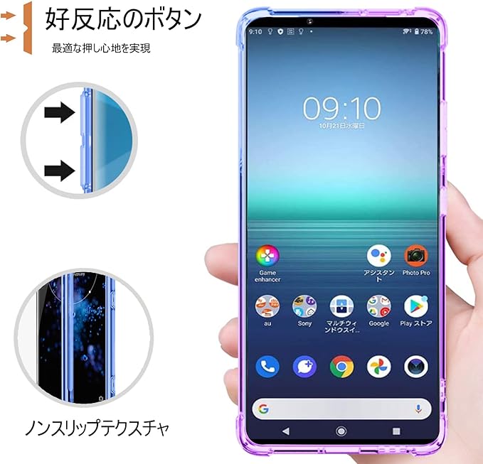 [おしゃれなデザイン] 衝撃吸収、耐久性が最も効率的で丈夫なの素材の一つであるTPUで作られております。経年変形などの心配がありません。背面が全面透明により、Galaxyの美しさをそのまま楽しむことが出来ます。Galaxy本来の美しさと触感を損なわずに、裸に近い視覚感と使用感を実現しました。本商品は端末に触れるケース裏側に極小さな微粒子上の突起処理を行い端末の発熱を軽減する散熱加工を行っております。 また極微粒子状の突起処理により汚れを逃しやすい構造で本体端末に汚れがつきにくく気泡を防止します。