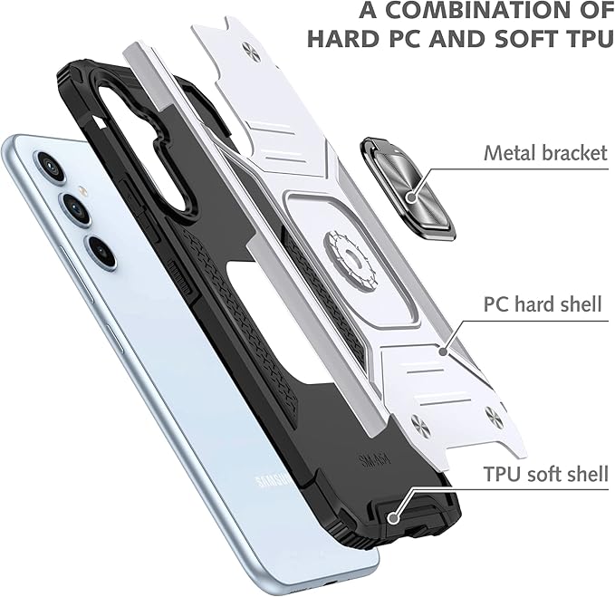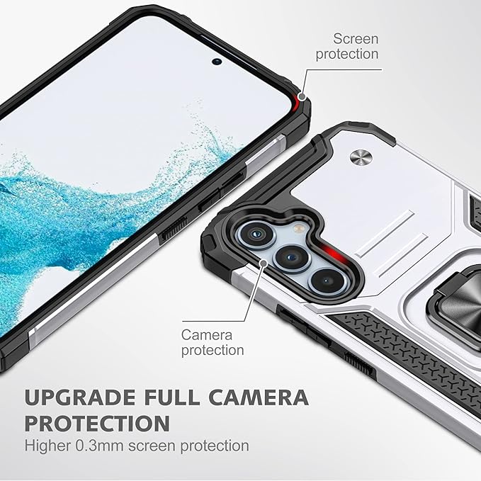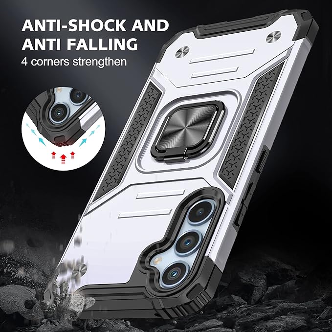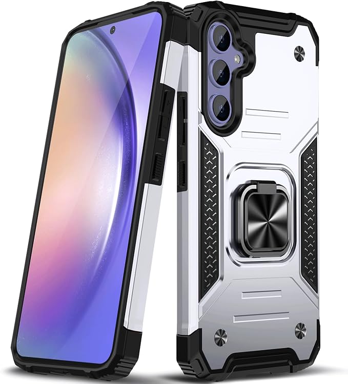 Galaxy A54 5G 用 ケース リング付き 耐衝撃 TPU クリア 薄型 軽量 携帯ガバー スタンド機能 車載ホルダー対応 二重構造 指紋防止 全面保護 米軍MIL規格 スクラブ カメラ保護 擦り傷防止 取り出し易い スクラッチ防止 着脱しやす[銀]KC65-170