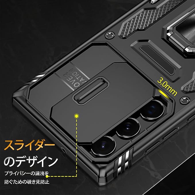 Galaxy A54 ケース リング付き スライド式カメラカバー 耐衝撃 スタンド機能 車載ホルダー レンズ保護 ギャラクシーA54 スマホケース PC TPUバンパー 防塵 人気 落下防止 滑り止め 指紋防止 携帯