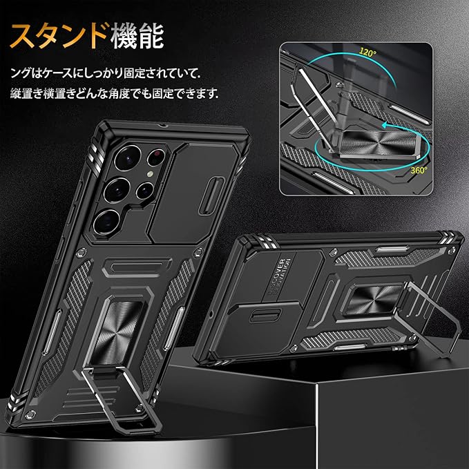 Galaxy A54 ケース リング付き スライド式カメラカバー 耐衝撃 スタンド機能 車載ホルダー レンズ保護 ギャラクシーA54 スマホケース PC TPUバンパー 防塵 人気 落下防止 滑り止め 指紋防止 携帯