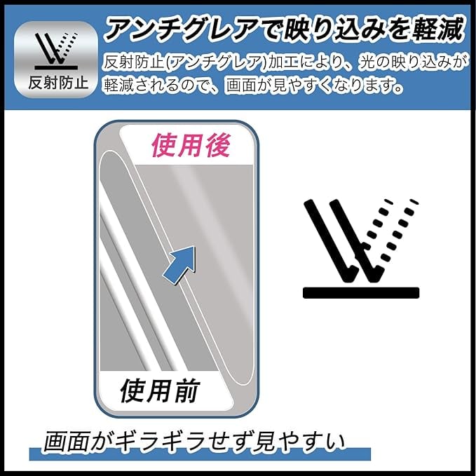 アンチグレア : 本製品には、アンチグレア加工が施されているので、蛍光灯や日光等による反射が効果的に抑えられ、画面が見やすくなります。