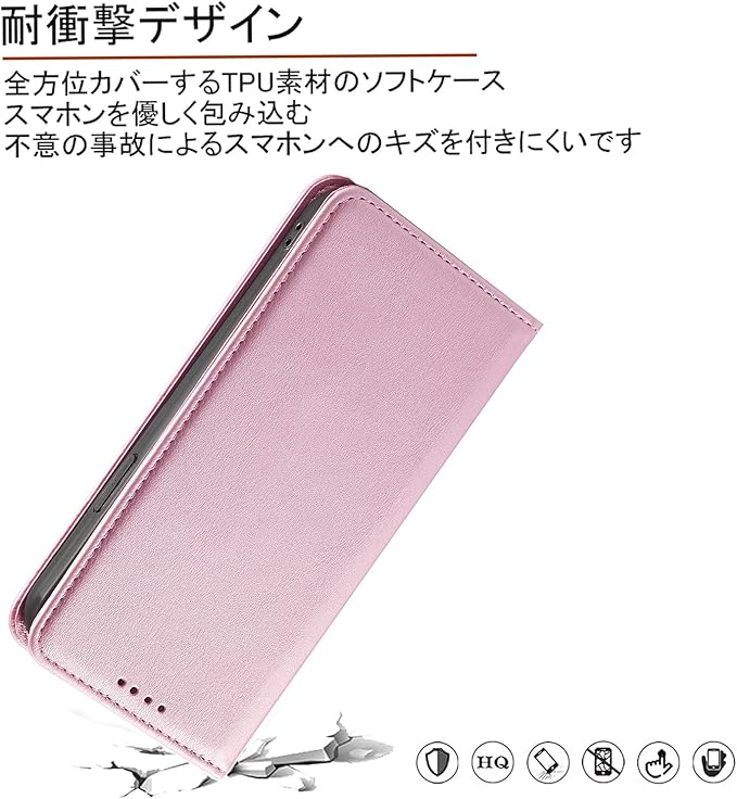 ?【素材改良】本商品の外部カバーは牛革繊維を人工合成という生産プロセスで仕上げられた合革で、普通の合革より、性能上の 耐熱性、耐摩擦が一層アップされた。表面生地が硬すぎず、やわすぎず、ちょっと良い手触りです。手汗が出てきても滑りにくく、ケースにも変な匂いがございません。インなケースは弾力性のあるソフト素材を採用しており、四角までしっかり保護でき、実用性高い手帳型です。