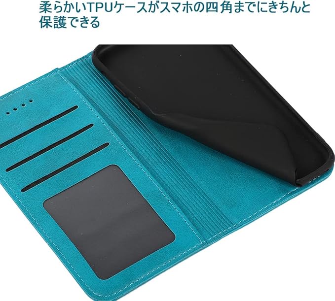 ?【素材改良】本商品の外部カバーは牛革繊維を人工合成という生産プロセスで仕上げられた合革で、普通の合革より、性能上の 耐熱性、耐摩擦が一層アップされた。表面生地が硬すぎず、やわすぎず、ちょっと良い手触りです。手汗が出てきても滑りにくく、ケースにも変な匂いがございません。インなケースは弾力性のあるソフト素材を採用しており、四角までしっかり保護でき、実用性高い手帳型です。