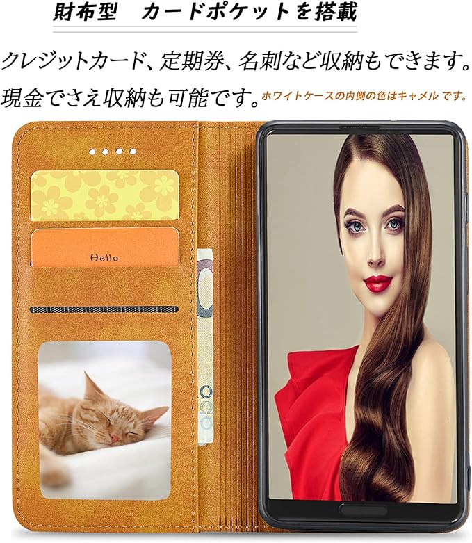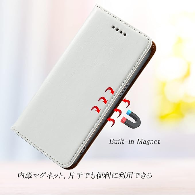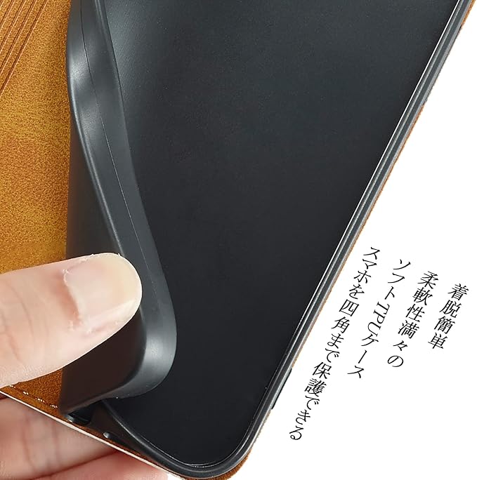 ?【素材改良】本商品の外部カバーは牛革繊維を人工合成という生産プロセスで仕上げられた合革で、普通の合革より、性能上の 耐熱性、耐摩擦が一層アップされた。表面生地が硬すぎず、やわすぎず、ちょっと良い手触りです。手汗が出てきても滑りにくく、ケースにも変な匂いがございません。インなケースは弾力性のあるソフト素材を採用しており、四角までしっかり保護でき、実用性高い手帳型です。