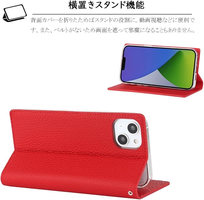 Elick iPhone 15 ケース 手帳型 高級牛革 アイフォン 15 ケース 手帳型 本革 マグネット式 スタンド機能 カード収納 ストラップ付き アイフォン 15 手帳型 ケース iPhone 15 カバー レッド