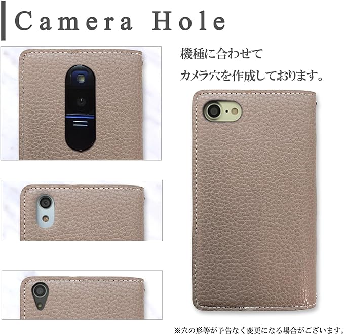 機種に合わせた開口部が開いております。電源ボタン等はケースの上から押す仕様となっております。ご了承ください。手帳型ケースはスマホ本体より大きめの作りになっております。
