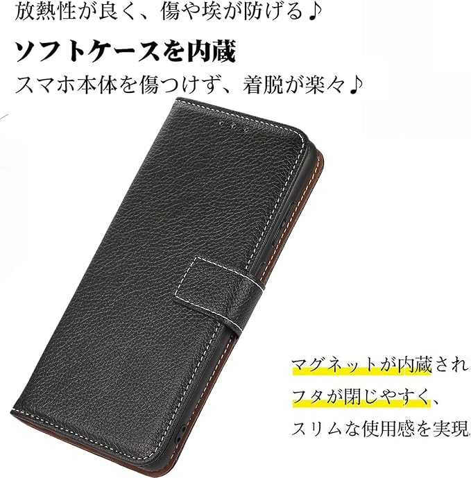 高品質なTPUとPUを利用することで良い手触りと耐衝撃性を実現 外部は上質なPU革素材を採用、傷や汚れが目立ちにくく長く使え、放熱性にも優れています。本体を固定するカバーはTPU素材のソフトケースなので脱着が簡単。ポリカーボネートの固い素材ではないので、脱着時に本体を傷つける心配がなく、落下時にカバーが破損することも無いので安心してご利用いただけます。レザーのカバーはTPUケースよりも少し大きめに設計されており、どのような落下でも、衝撃が直接スマートフォンに伝わらないので安心です。