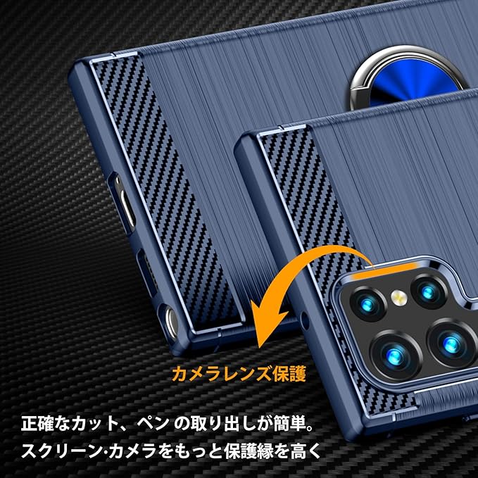 Galaxy A54 5G ケース リング付き TPU 炭素繊維スマホケース 衝撃吸収 スタンド機能 薄型 360回転 車載ホルダー対応 散熱加工 指紋防止 スリム ソフト サムスン ギャラクシーA54 携帯カバー 青 KC-14-57