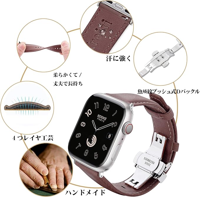 「上質な素材」本製品はアップルウォッチ交換ベルトです。高品質の本革を採用されて,柔軟性と耐用性が兼ねて、柔らかくて丈夫で、手触りが快適です。