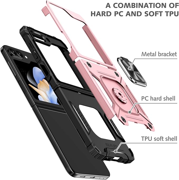 Galaxy Z Flip5 用ケース リング付きカバー 耐衝撃 スタンド機能 車載ホルダー レンズ保護 ギャラクシー Z フリップ5 用スマホケース PC TPUバンパー 防塵 人気 落下防止 滑り止め 指紋防止 携帯カバー ピンク A81