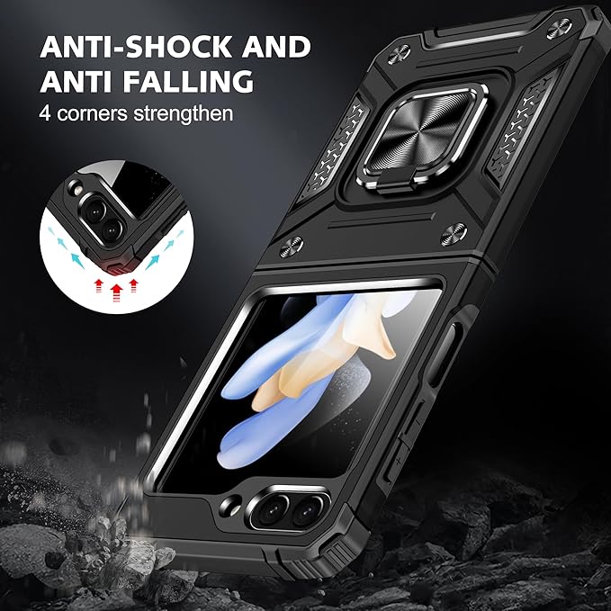 Galaxy Z Flip5 用ケース リング付きカバー 耐衝撃 スタンド機能 車載ホルダー レンズ保護 ギャラクシー Z フリップ5 用スマホケース PC TPUバンパー 防塵 人気 落下防止 滑り止め 指紋防止 携帯カ