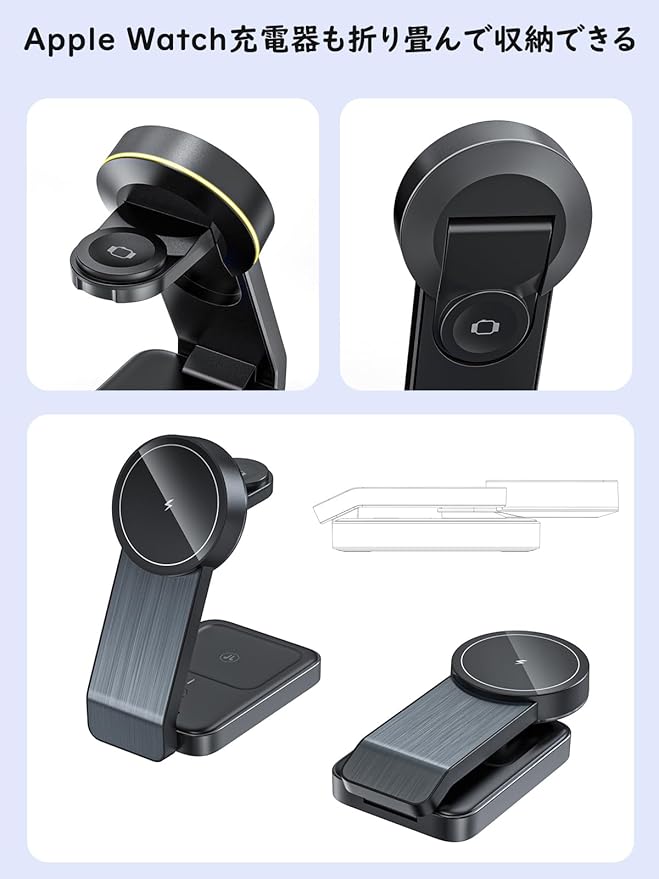 Eisuiyi ワイヤレス充電器 マグネット式 3in1充電スタンド magsafe充電器 Apple Watch充電器 iPhone 16/15/14/13/12/Airpods 2/3/4/Pro/Apple Watchに対応 置くだけ 15W急速充電器 折り畳み式 ブラック