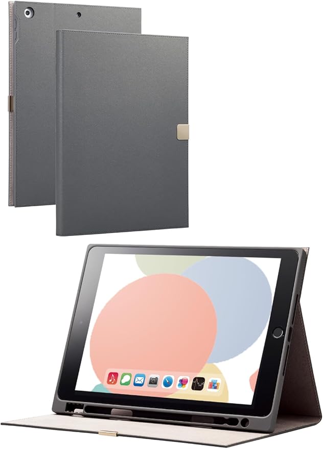 エレコム iPad 第9/8/7世代 iPad 10.2 2019年モデル フラップケース ソフトレザー &me Apple Pencil収納 フリーアングル チャコールグレー TB-A19RWVJMGY