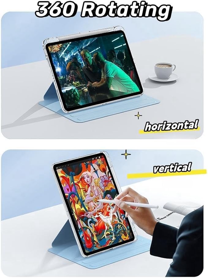 【 360度回転 スタンドカバー 】ケースは360°回転スタンド仕様に設計されており、2つの滑り止めの溝によって、縦置きでも横置きでもさまざまな角度でおデバイスを安定的に支えます。実用的に便利です