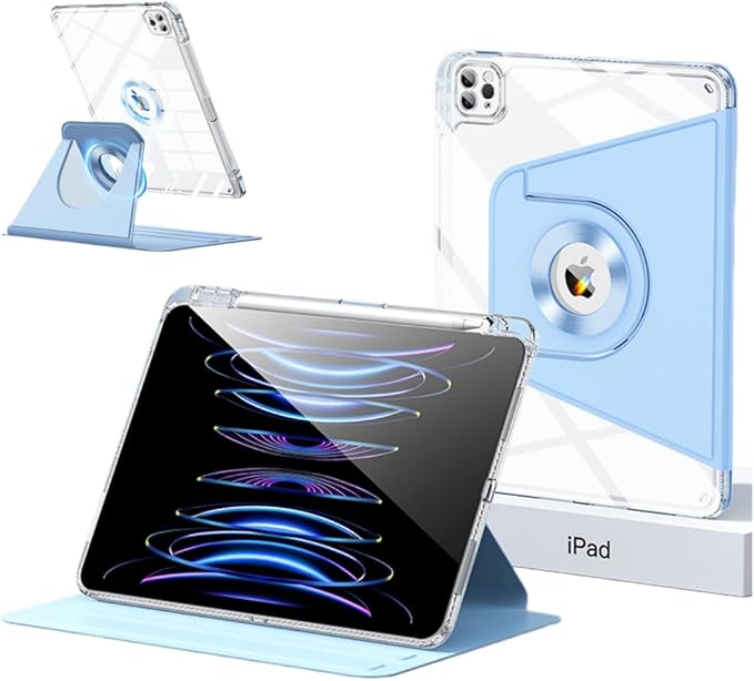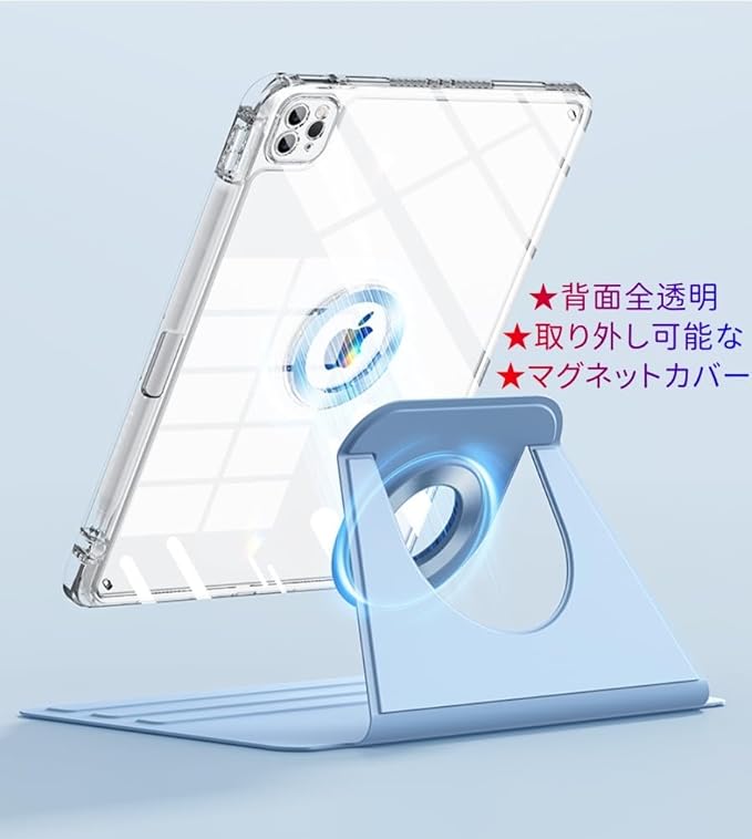 iPad 9.7 ケース iPad 第6世代 第5世代 (2018/2017)/Air2/Air カバー 360度回転 取り外し可能なマグネット 背面全透明 ペン収納 オートウェイクアップ/スリープ機能 iPad 9.7 2018 2017 / Air 2/Air 1 ケース 縦置き 耐衝撃 磁石吸着 分離式 おしゃれ 人気 手帳型カバー 軽量 薄型 タブレット ケース, ブルー