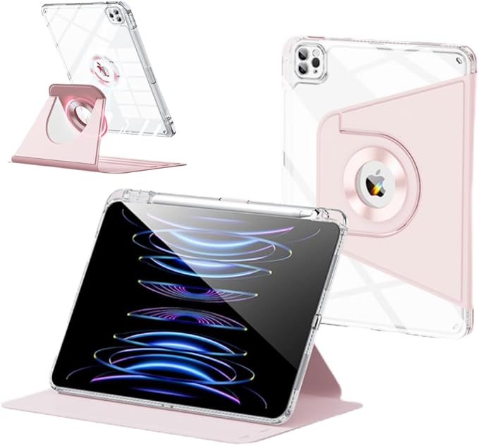 iPad 9.7 ケース iPad 第6世代 第5世代 (2018/2017)/Air2/Air カバー 360度回転 取り外し可能なマグネット 背面全透明 ペン収納 オートウェイクアップ/スリープ機能 iPad 9.7 2018 2017 / Air 2/Air 1 ケース 縦置き 耐衝撃 磁石吸着 分離式 おしゃれ 人気 手帳型カバー 軽量 薄型 タブレット ケース,ピンク