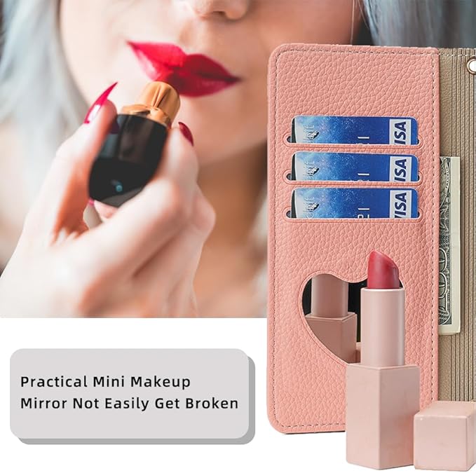 【収納力抜群とミラー付き】ファスナー式の小銭入れ、窓口式のカード入れ、カードスロット複数付き、それにピタッと閉じるマグネット式の留め具により、大事なカードたちを完全に保護します。 女性用のメイクアップ