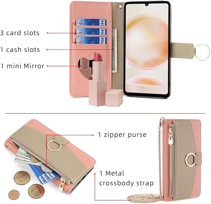 Xiaomi 13T/13T Pro ケース 手帳型 ショルダー シャオミ 13T プロ 財布型 カバー 肩掛け 斜めがけ 化粧鏡付き 女性 おしゃれ ロングストラップ ジッパー小銭入れ カード収納 横置き 上質な手触り 耐汚れ気質 肌感レザー 防指紋 耐久性 贈り物 COCOCLOUD ピンク