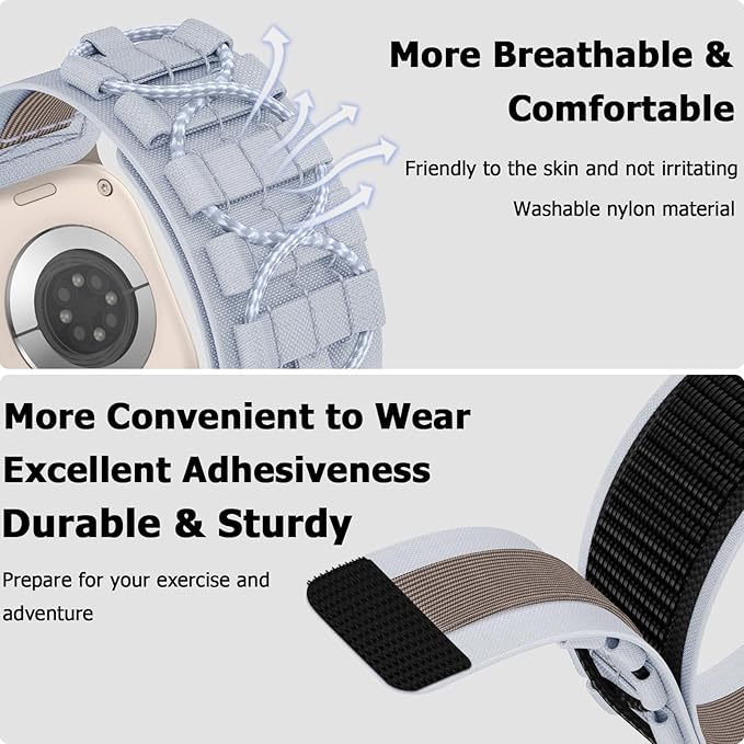 Anlinser コンパチブル アップルウォッチ バンド 49mm 46mm 45mm 44mm 42mm ナイロンスポーツバンド コンパチブル Apple Watch Ultra 2/Ultra バンド シリーズ SE 10 9 8 7 6 5 4 3 2 1 (グレー)