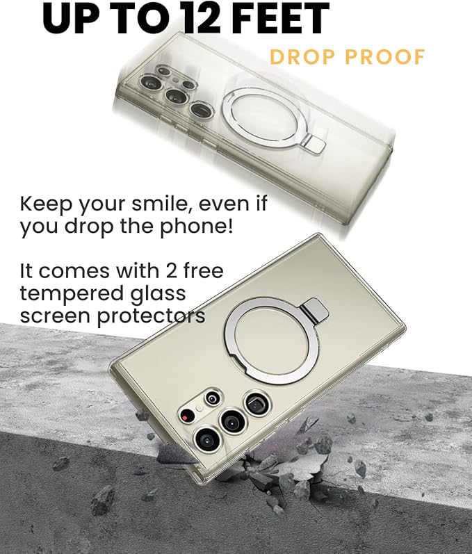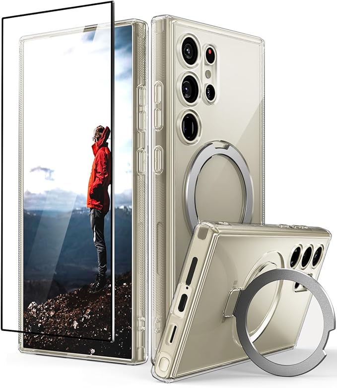 Caseborne Slimシリーズ Samsung Galaxy S24 Ultra ケース - [3-in-1 コンボ] [超クリア ハイブリッド磁気カバー] と組み込みスタンド、テンパードガラススクリーンプロテクター