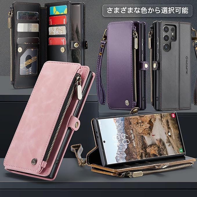 ? 【多機能一体型ウォレットデザイン】 Samsung Galaxy S24 Ultra専用のこのウォレットケースは、10枚のカードホルダー、1つのファスナー付き小銭入れ、および紙幣用スロットを備え、IDカード、クレジットカード、運転免許証、紙幣、小銭などを一括で収納。財布を持たずに外出する際にも、ショッピングや散歩、出張、短期旅行、日常の仕事に最適なパートナーです。