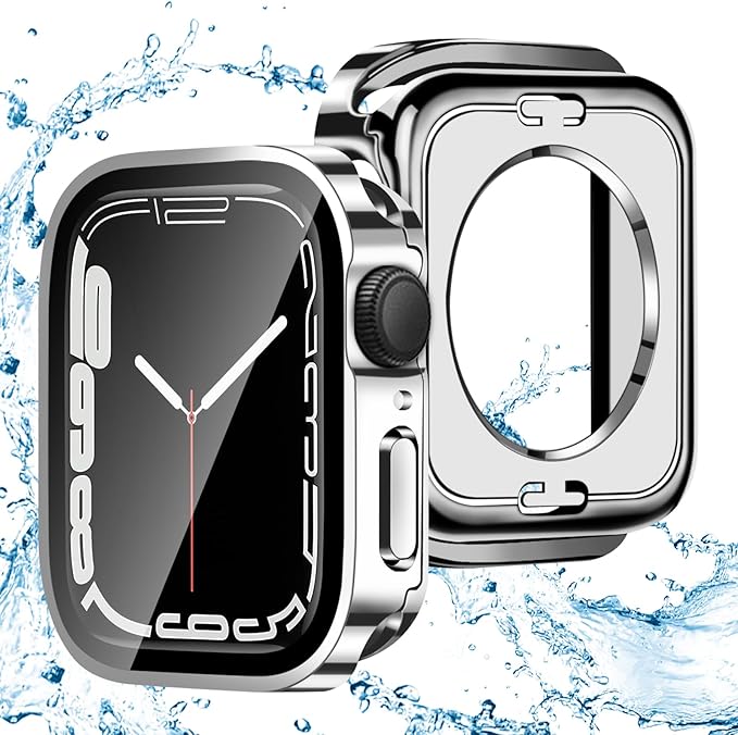ANYOI 対応 アップルウォッチ カバー Series SE2/SE/6/5/4 Apple Watch ケース PC素材 ガラスフィルム 一体型 防水 カバー 2 in 1 前後の保護 3D直角エッジデザイン メッキ加工 Apple Watch カバー 耐衝撃 アップルウォッチ ケース 全面保護 装着簡単 高耐久 高透過率 44mm 光沢のシルバー