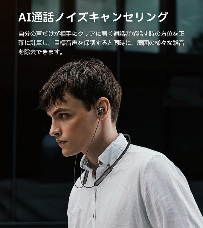 【通話ノイズキャンセリング】AI通話ノイズキャンセリング技術を搭載し、周囲の騒音を効果的に除去。騒がしい場所や移動中でも、ク
