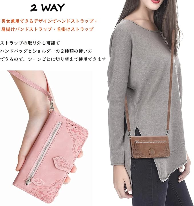 【2種類の携帯方式】調節可能ショルダーストラップ、可斜めがけ、可肩掛け。手にかけることもできますし、肩にかけることもできます。携帯電話が紛失する恐れはなし、斬新なデザインのハンドバッグは日常、平日、短距離旅行、アウトドアなどにとても向いています。ケースだけが必要な場合、ストラップは取り外し可能です。また、ケースデザインはショッピン