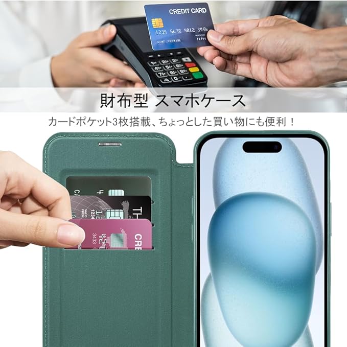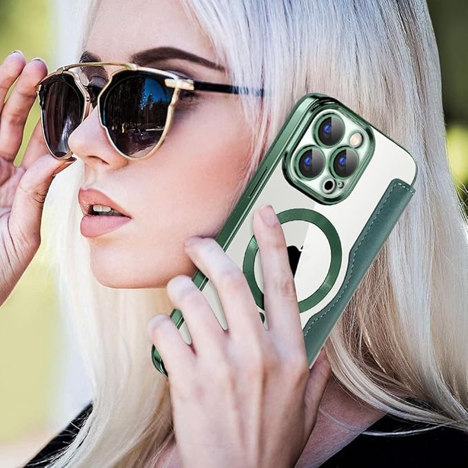 【REHOOF】iPhone 14 pro ケース 手帳型 magsafe対応 6.1インチ 背面 透明 クリア 財布型 アイフォン 14 プロ ケース マグセーフ 手帳 ワイヤレス充電対応 カード入れ PU革 レザー スマホケース 軽量 薄型 防塵 耐衝撃 全面保護 スマホカバー(グリーン)