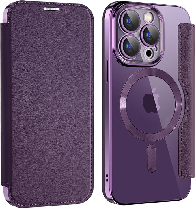 【REHOOF】iPhone 14 pro ケース 手帳型 magsafe対応 6.1インチ 背面 透明 クリア 財布型 アイフォン 14 プロ ケース マグセーフ 手帳 ワイヤレス充電対応 カード入れ PU革 レザー スマホケース 軽量 薄型 防塵 耐衝撃 全面保護 スマホカバー(パープル)