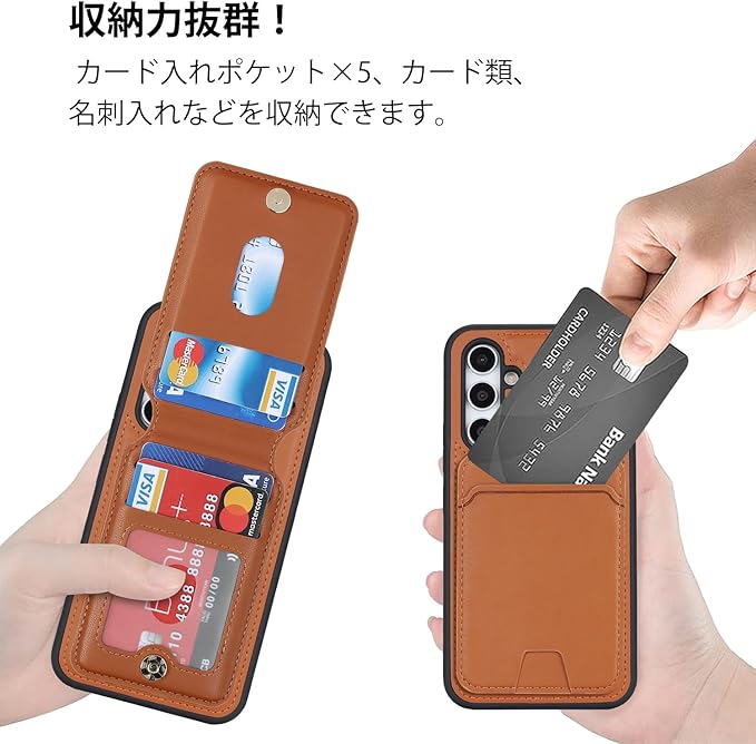 Havaya Galaxy A54 5G ケース ギャラクシーA54 5g ケース SC-53D 耐衝撃 SCG21 au A54 5G 背面 カード収納 分離式 取り外し可能 フェイクレザー-ブラウン