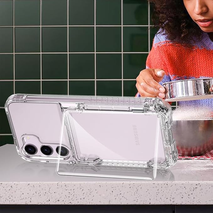 MuZiF Samsung Galaxy S24 用 ケース クリア 米軍MIL規格の保護 カード収納 耐衝撃構造 黄変防止 擦り傷防止 透明 PC 背面クリア Galaxy S24 用 カバー クリアケース(Galaxy S24用,クリア)