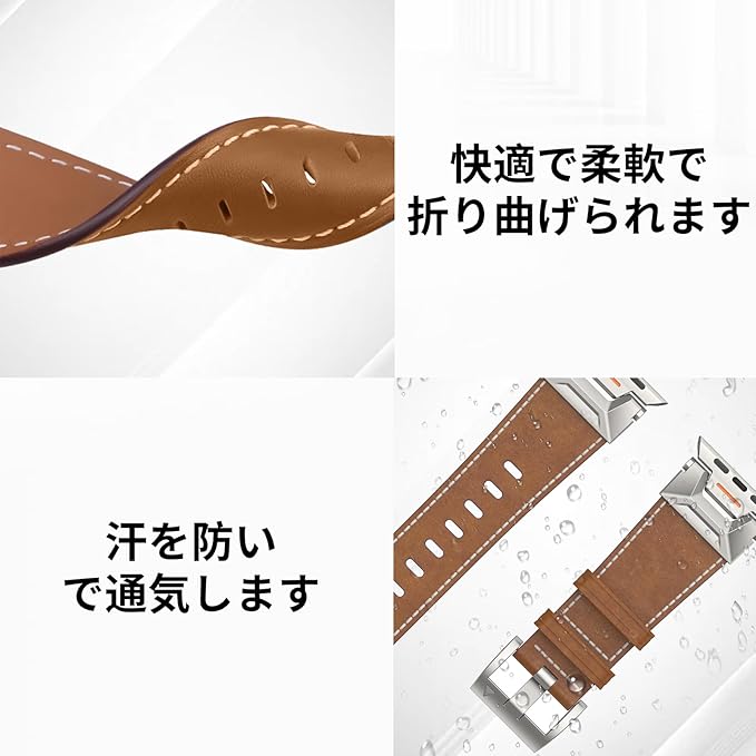 CABOBE Apple Watch バンド 革 Apple Watch 9/8/7 Apple Watch SE/SE2/6/5/4 Apple Watch 3/2/1 Apple Watch Ultra2/Ultra 対応 アップルウオッチ バンド 本革 ビジネス ステンレス製 49mm 45mm 44mm 42mm 耐衝撃 男女通用 高級ベルトレザー製 (49mm 45mm 44mm 42mm,浅いクブラウン)