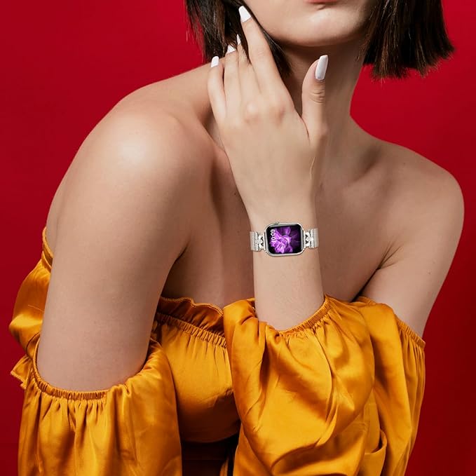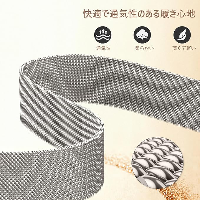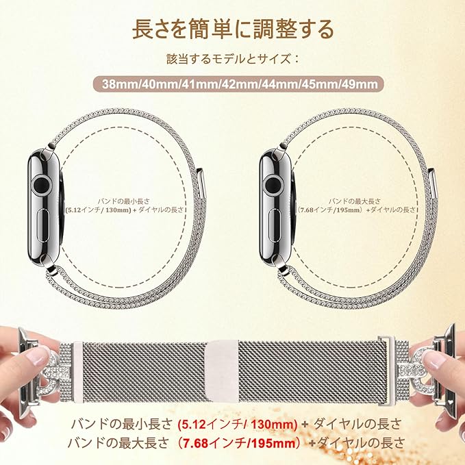 [RoSoki] コンパチブル Apple Watch バンド 49mm 45mm 44mm 42mm /Apple Watch Series 10 46mm /Apple Watch Ultra/SE/Series 10 9 8 7 6 5 4 3 2 1 用 交換ベルト ステンレスチール 金属バンド ステンレス留め金製 マグネットクラスプ 交換バンド 替えストラップ バンド (スターライト)