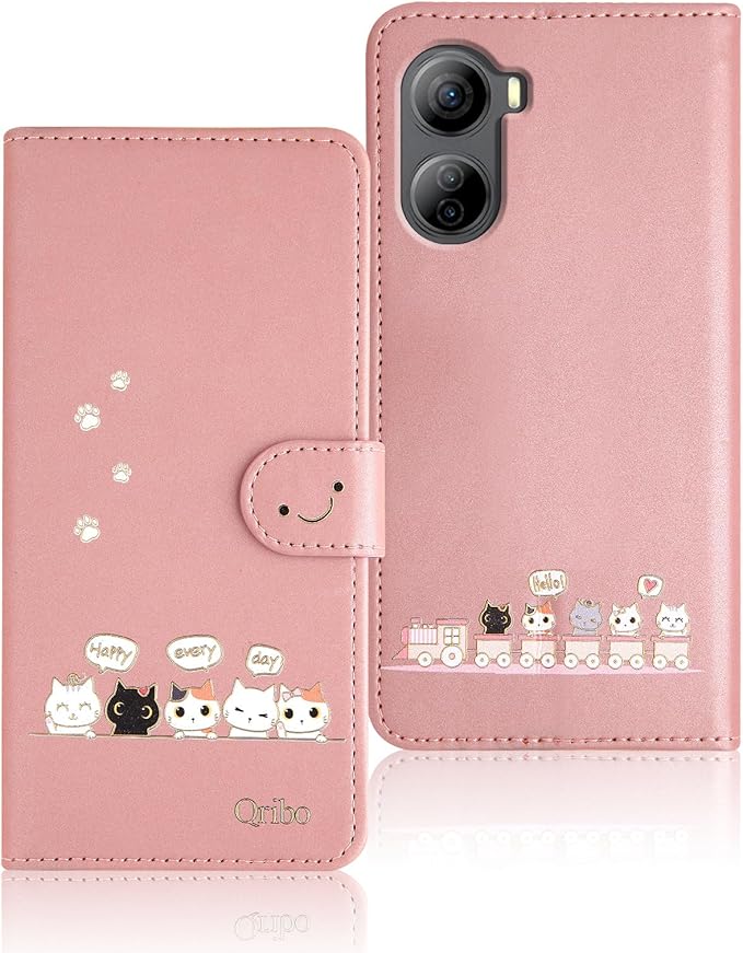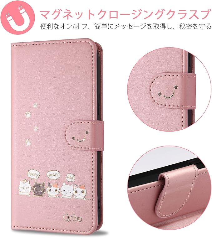 Qribo Libero 5G IV ケース 手帳型 リベロ5g iv ケース シンプルなのに可愛いデザイン エンボス加工猫柄 ZTE Libero 5G IV カバー うれしい気持ち 6.6インチ対応 A302ZT ケース リベロ5g4 スマホケース リベ