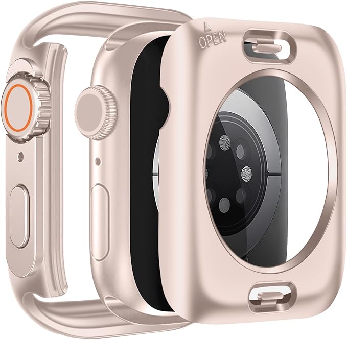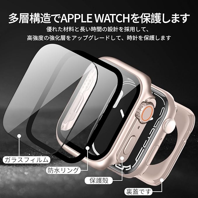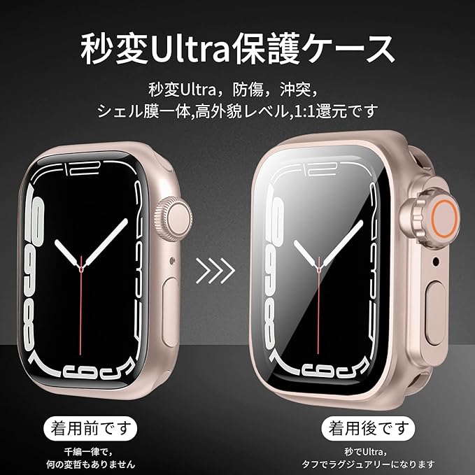 TEMEDO 対応 Apple Watch ケース Series 9/8/7 アップルウォッチ カバー PC素材 防水 2 in 1 前後の保護 Apple Watch カバー 全面保護 二重構造 アアップルウォッチ ケース ガラスフィルム 一体型 高耐久 高透過率 装着簡?(41mm, Ultra風のローズゴールド)