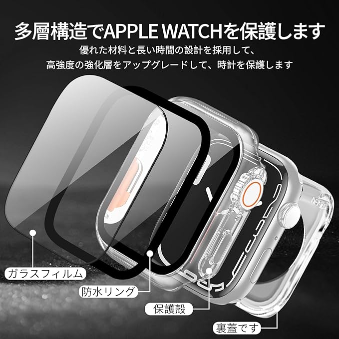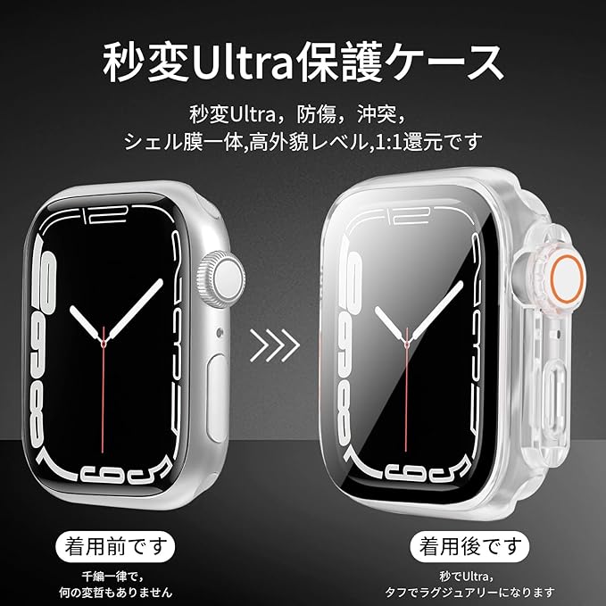 TEMEDO 対応 Apple Watch ケース Series 9/8/7 アップルウォッチ カバー PC素材 防水 2 in 1 前後の保護 Apple Watch カバー 全面保護 二重構造 アアップルウォッチ ケース ガラスフィルム 一体型 高耐久 高透過率 装着簡?(41mm, Ultra風のクリア)