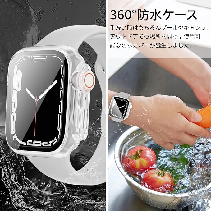 【360ど度防水】Apple Watchケース特殊加工による防水機能により、 手を洗う時はもちろん汗をかいた時、シャワーを浴びた時にもかかわらずにアップルウォッチをご使用できます。 ※アップルウォッチ本来の防水性能を向上させるものではありません。プールや海などの水場でのご使用時はアップルウォッチの説明に従い、スキューバダイビング、ウォータースキーなど、水圧が高くなったり、所定の水