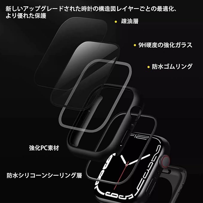【高感度タッチセンサー】Apple Watch ケースの画面部分が硬度9Hで強靭な日本旭硝子素材を採用して耐傷、耐衝撃のは強い。商品は超薄型のスク