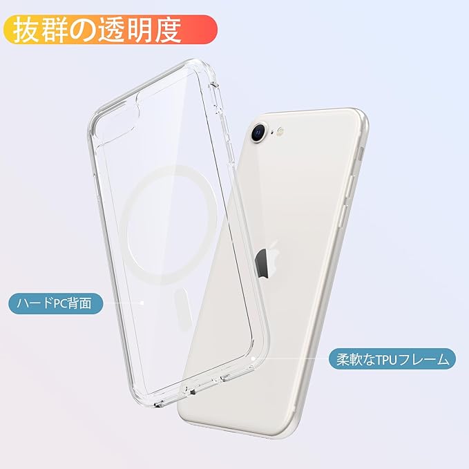 iPhone SE3 ケース クリア MagSafe対応 超軽量 iPhone SE2 ケース iPhone7 iPhone8 用 カバー 黄変防止 TPU+PC バンパー 耐衝撃 すり傷防止 ワイヤレス充電対応 PinLiSheng,クリア