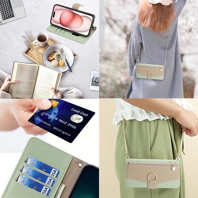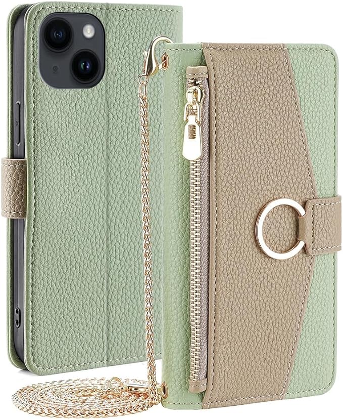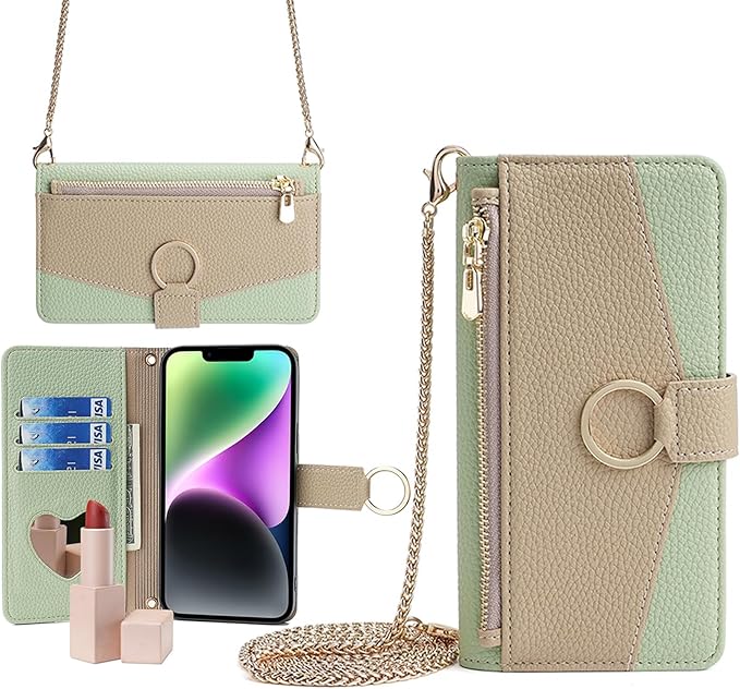 OPPO A79 5G ケース OPPO A79 5G カバー【Trocent】OPPO A79 5G ケース 鏡付き 化粧鏡付き スマホケース 肩掛け 斜めがけ ストラップと首掛け付き スタンド機能 カード収納 手帳型 上質な手触り サイドマグネット チャックポケット付き おしゃれ 耐汚れ 耐久性 全面保護 2色組合せ (カーキ&グリーン)