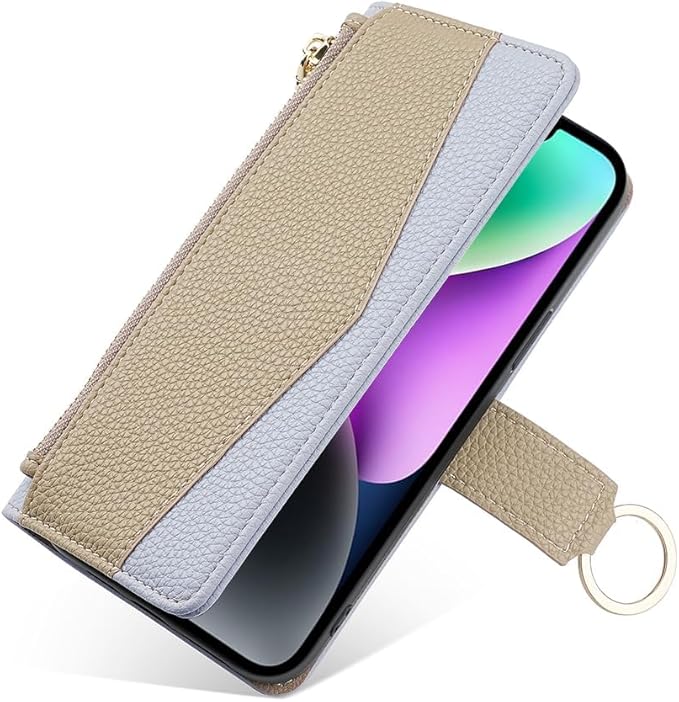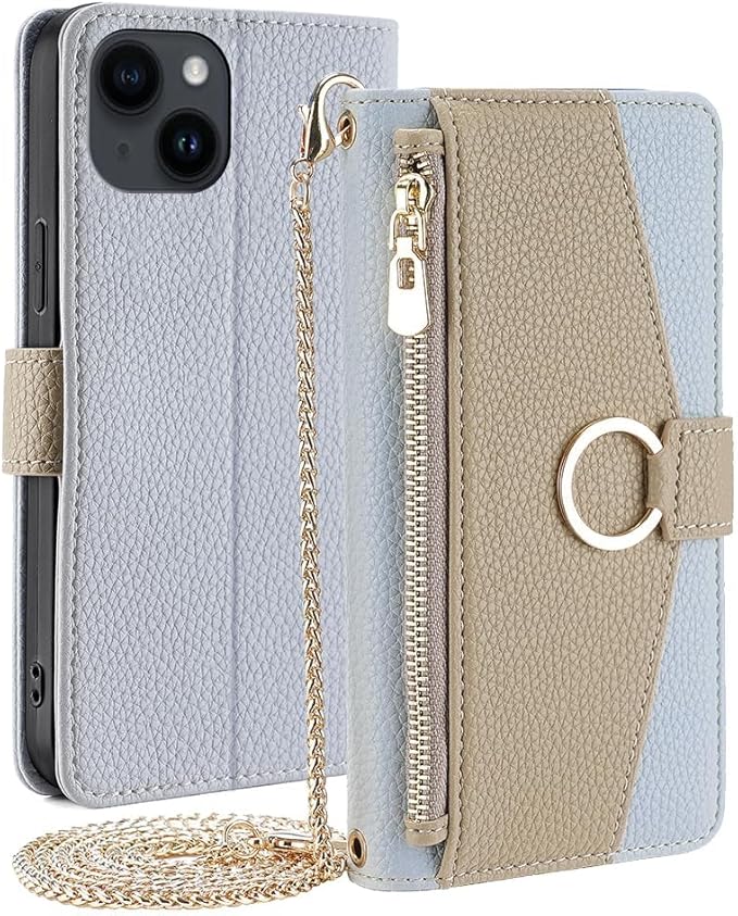 OPPO A79 5G ケース OPPO A79 5G カバー【Trocent】OPPO A79 5G ケース 鏡付き 化粧鏡付き スマホケース 肩掛け 斜めがけ ストラップと首掛け付き スタンド機能 カード収納 手帳型 上質な手触り サイドマグネット チャックポケット付き おしゃれ 耐汚れ 耐久性 全面保護 2色組合せ(カーキ&スカイブルー, OPPO A79 5G)
