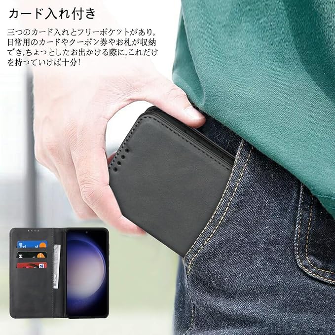 S23 FE galaxy ケース 手帳型 Galaxy S23 FE SCG24 au ケース GalaxyS23FE ケース S23FE サムスン ギャラクシー S23FE カバー スマホケース S23FEケース 適用 case iCoverCase 内蔵マグネット カードケース スマホケース 携帯カバー カード入れ スタンド 落ち着いた色 レトロ ブラック